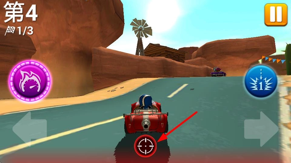 点击那个红色的瞄准按钮,就能锁定目标并发起攻击,在对抗性赛段里击败对手,为比赛胜利助力。