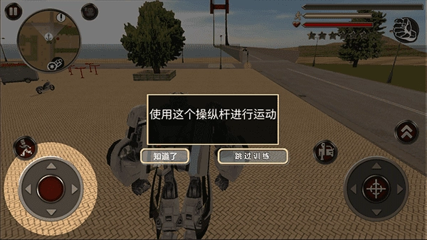 进入游戏后,我们可以通过左下角的轮盘来操控机器人移动。