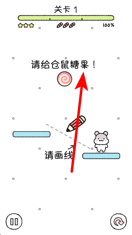 画线的作用是引导糖果移动到仓鼠所在的位置,这样就能顺利通关了。