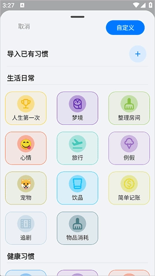 • 自定义习惯类型