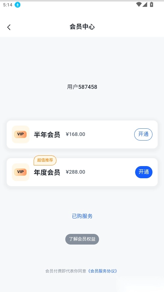 进入会员中心后,选择对应的会员类型,点击“开通”按钮就能支付订单并完成会员开通。