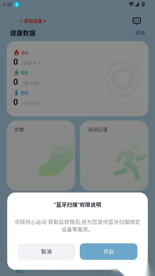 弹出“蓝牙扫描”权限说明可点击“开启”进入下一步