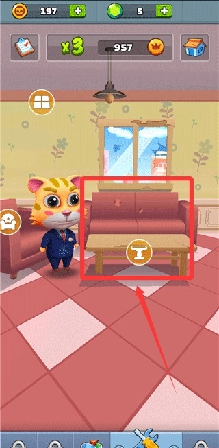 3、点击“维修”,我们就能前往客厅,在此处我们能够打造属于你的小房间。
