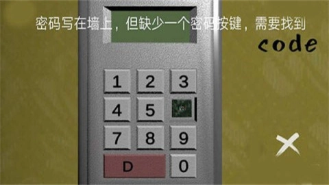 墙上有个密码,不过少了个关键按键,你得赶紧找到它。