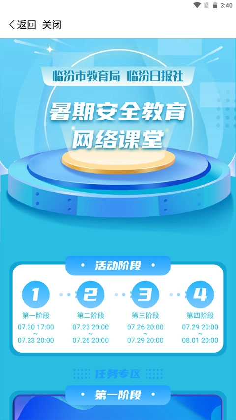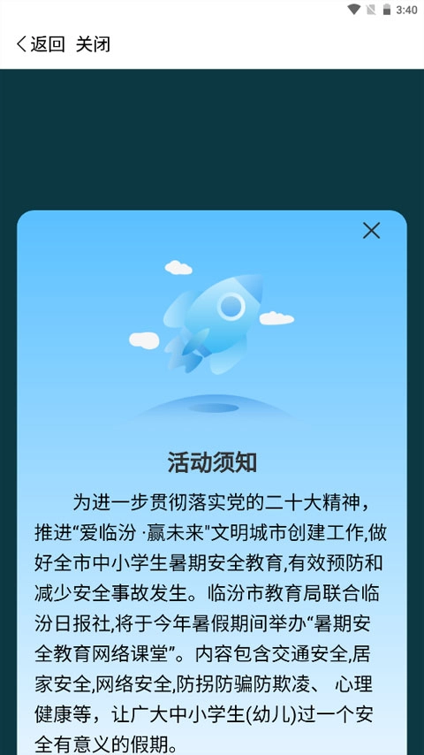 打开临汾云应用,在首页找到并点击进入暑期安全教育网络课堂板块。
