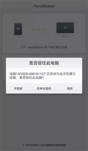连接无线网络,在手机完成安装后打开HandShaker应用。