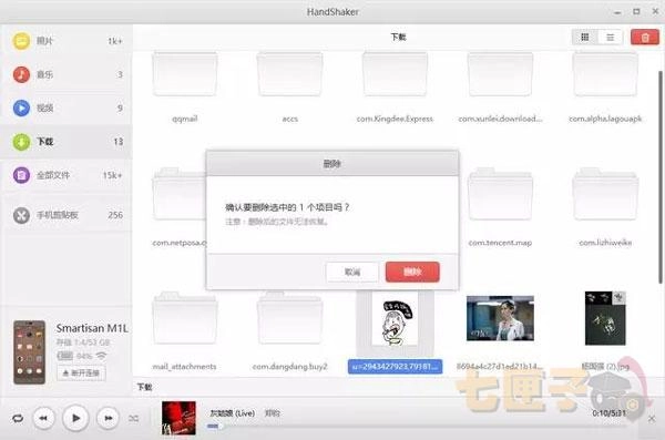 只需用鼠标把要传输的文件拖到电脑上,就能管理手机内容了,传输速度一般在5M/s到20M/s之间,具体快慢取决于当前宽带的传输速率。