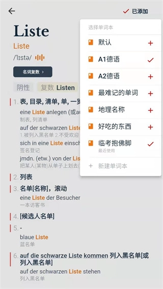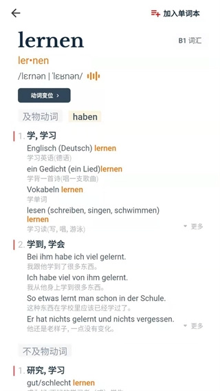德语和汉语词条、德语例句都配有优质清晰的发音,助你轻松说一口流利德语。