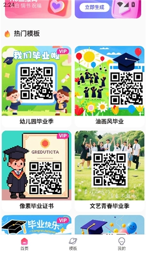 二维码生成器是一款十分实用的手机二维码设计制作软件,界面简洁却功能强大,用户只需一键操作就能生成二维码,海量不同风格的二维码模板,助你告别千篇一律的黑白二维码,打造专属个性定制二维码,感兴趣的朋友不妨来二维码生成器体验一番。
