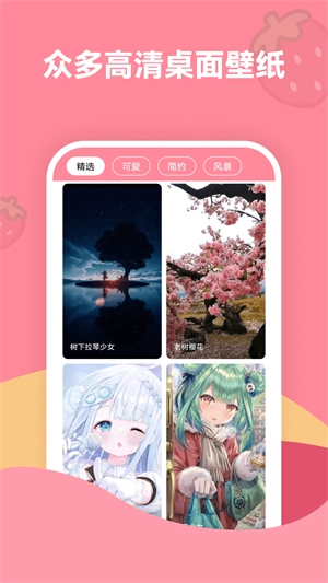 草莓壁纸是一款免费壁纸软件,内含海量高清、超清及4K分辨率的精美壁纸,能满足不同用户的个性化需求;其配备强大搜索引擎,用户输入关键词就能快速找到心仪壁纸。