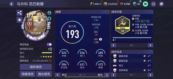 光荣岁月典藏版范巴斯滕迎来能力值更新,现已跻身与限定罗纳尔多同级的球员行列,其基础能力值似乎比限定大罗还要略高一些。范巴斯滕也是我个人十分欣赏的锋线选手,进攻实力相当强悍,在游戏里射门既精准又极具爆发力,面板数据妥妥是当前T0级别的存在。限定球员方面,推荐氪佬直接入手大罗(无需多解释);德罗巴也值得考虑,从没见过魔兽认怂,不管是游戏里还是现实中都一样,猛得不行;四周年之星伊布的具体表现虽然还不确定,但参考以往伊布的表现,应该不会差;年度哈兰德是大家常见的强力前锋;白色情人节巴蒂则属于神经刀类型,进阶等级越高越强,但总感觉不如之前推出的星星巴蒂那么让人眼前一亮。