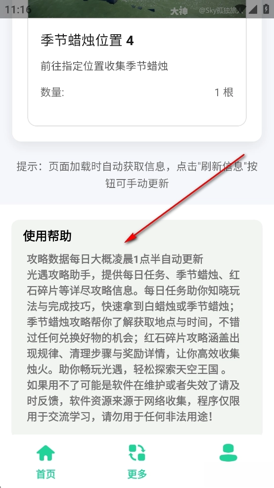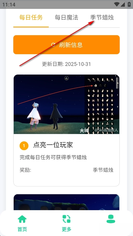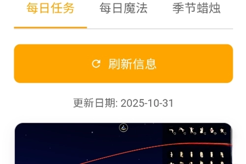 《光遇攻略助手》是一款专门面向光遇玩家开发的攻略辅助工具,里面涵盖了每日任务、每日魔法、季节蜡烛等丰富的游戏攻略信息。玩家可以根据自己的需求选择对应的攻略进行浏览阅读,还能通过点击刷新按钮来获取最新的攻略内容,帮助大家更轻松地享受游戏乐趣。