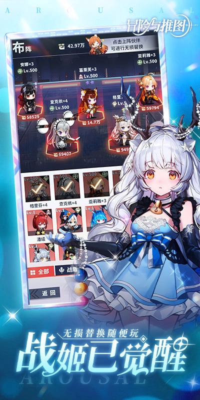 在冒险推图的过程中,你能体验到相当完善的抽卡玩法和休闲乐趣。通过抽取各类不同的少女角色加入队伍,逐步提升队伍的实力,探索风格各异的场景,一步步揭开游戏里的奥秘吧。