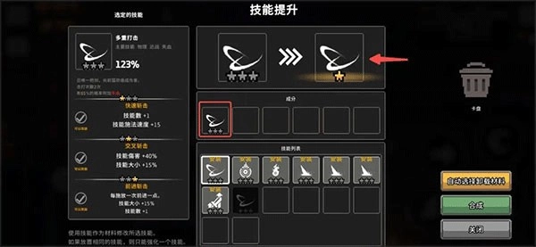 游戏进行到后期,获得的技能卡数量会逐渐增多。对于那些暂时用不上的技能卡,你可以点击界面上的‘+’按钮进入技能升级强化页面,把这些闲置的技能卡当作‘狗粮’喂给需要提升等级的技能卡,以此来完成升级强化。
