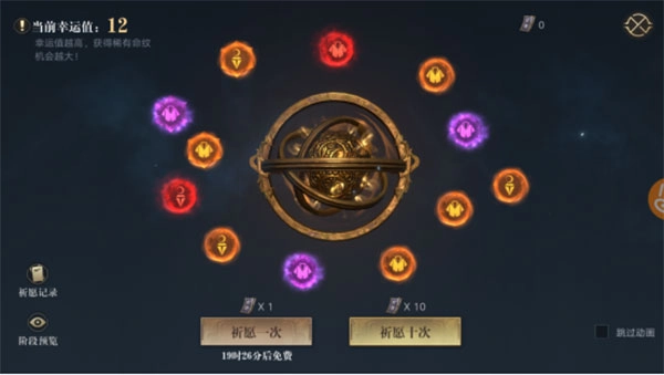 每次进行祈愿都能得到1点积分,这些积分可以在命纹系统里的积分商城中兑换血清、开光石之类的珍稀奖励。