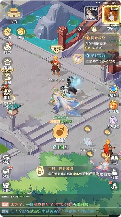和知己义结金兰,与爱人共泛扁舟,创建帮派参与热血帮战,或是组队围捕上古异兽。当落日余晖为长安城披上一层金纱时,记得回帮派领地给灵兽喂食——没准能收获它们从秘境带回的奇珍异宝呢!
