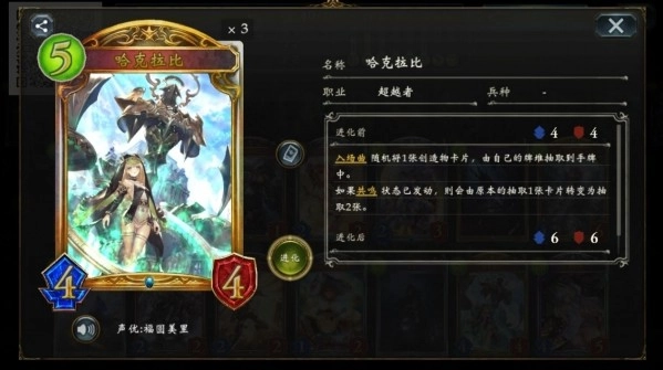 所有参与战斗的单位(士兵)卡牌均具备进化能力。通过进化王牌卡牌来增强其战力,以此开辟通往胜利的道路。