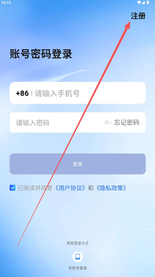 请输入使用者的手机号码,勾选下方的用户协议与隐私政策后,点击“注册”按钮。