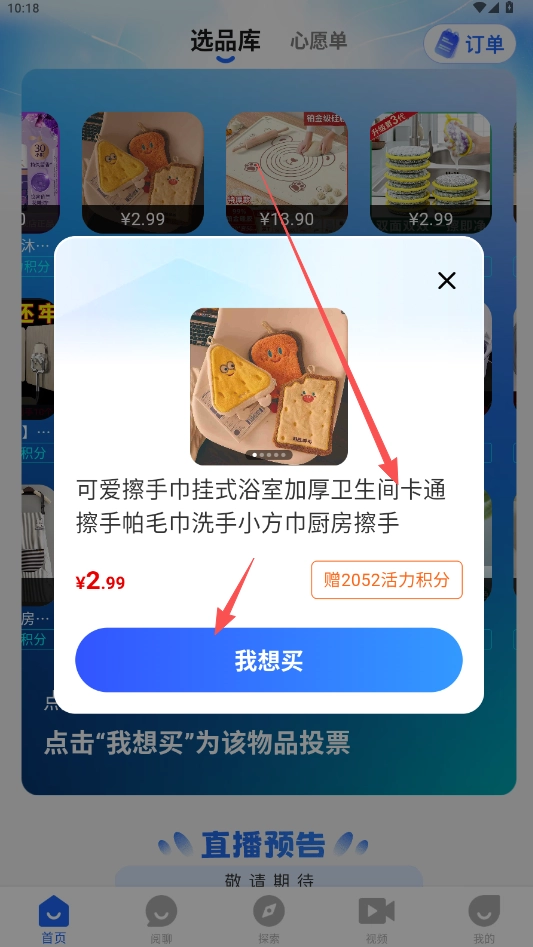下单选择购买商品,可获得赠予的活力积分。