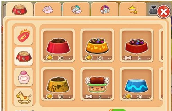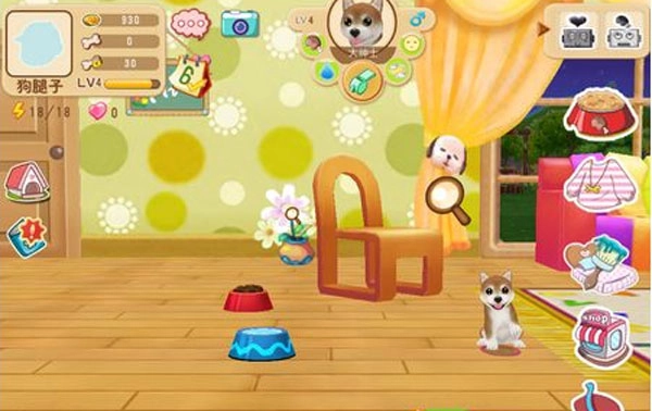 想要照顾好你的小狗,就需要准备食物、水、沐浴露等各种道具。相比前作,本游戏前期的道具都需要通过商城购买。其中,狗粮可以增加小狗的饥饱度,水能提高饥渴度,沐浴露用来清洁小狗,玩具则能让小狗心情愉悦。另外,轻轻抚摸小狗也是一种有效的方式,可以让它的心情变得更好。
