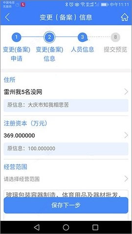 选择办理流程中的“变更(备案)申请”,接着选择变更内容,此处为演示需要,已勾选所有可变更项。
