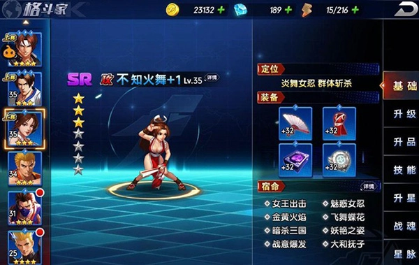 若你更倾向于持续伤害与特效流派,不妨试试“火焰灼烧队”,其核心成员有舞、草薙京、草薙菜舟、李烈火、八神庵和酒鬼,这套阵容不仅输出爆发强劲,还具备控制效果。