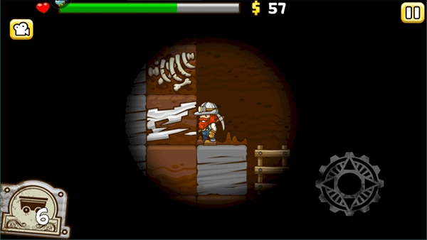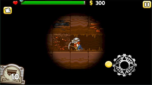 进入矿洞后,视线会受到限制,只能看清角色周边的一小块区域,这时候可以借助操作杆来控制移动或者进行挖掘操作。