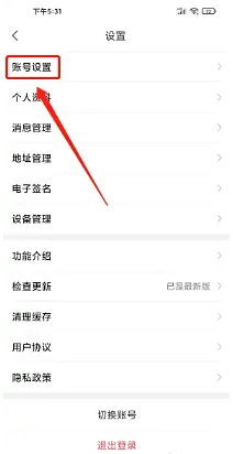 在设置页面中,选择【账号设置】进入账号管理界面。