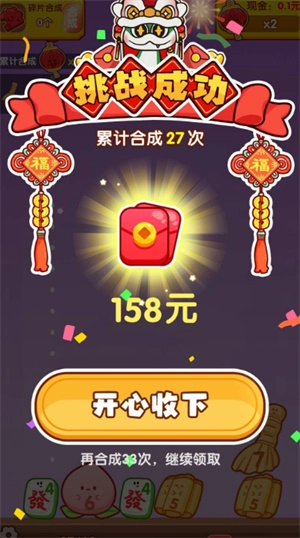 新人可以持续合成,只要得到一个红灯笼,红包就能到账。