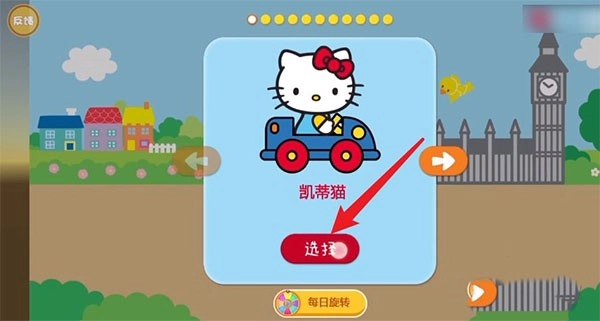 打开凯蒂猫飞行冒险的中文版,按照图中的指示点击并选择【凯蒂猫】。