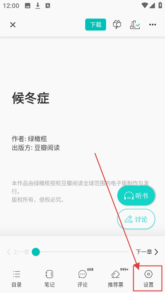 阅读时若需调整阅读相关设置,点击页面上的【设置】按钮,即可进入设置界面。