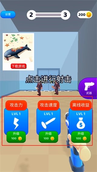 游戏的玩法和经典射击类游戏相近,玩家仅需瞄准敌人,进行射击操作即可。