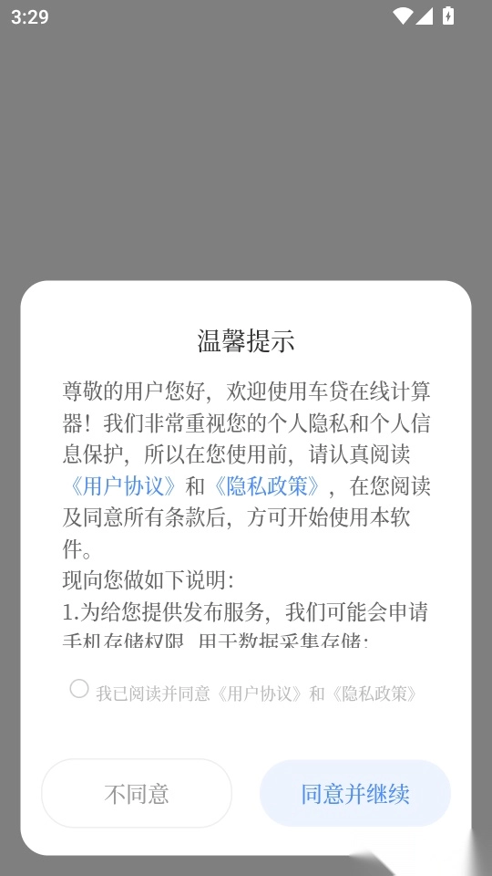 首先打开软件,阅读“温馨提示”内容后,点击“同意并继续”按钮即可进入。