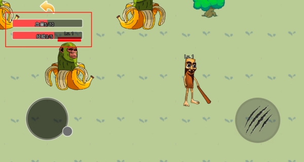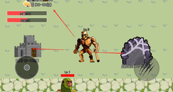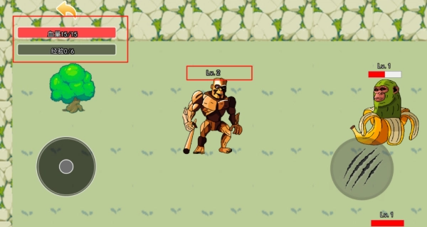 可以通过左上角的状态栏实时查看角色的各项信息,每成功击败一个等级相同的怪物就能得到1枚金币,而每次受到攻击则会减少1点生命值。