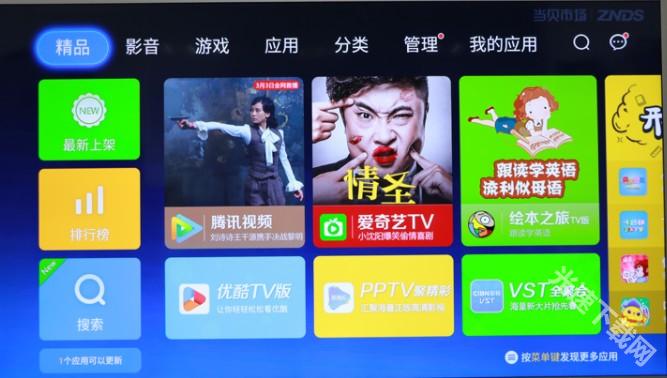 三、当贝市场安装完成后,你就能在电视上自由安装所需的第三方直播、点播、游戏等各类应用了,像影视快搜、银河·奇异果这类都可以!