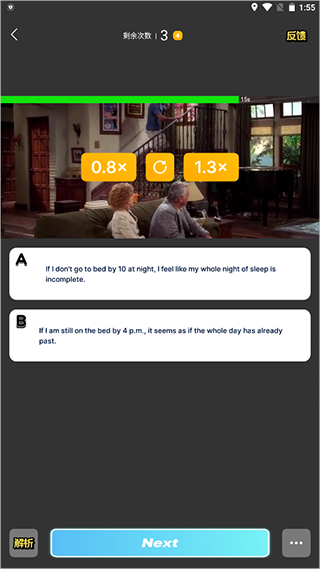 在听力练习时,就能一边观看视频,一边逐篇逐句地开展听力测试了。