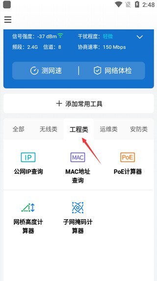 点开工程类板块,就能使用公网IP查询、MAC地址查询、POE计算器、子网掩码计算器等功能。