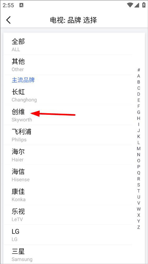 点击选择电视品牌,将遥控器添加至列表。