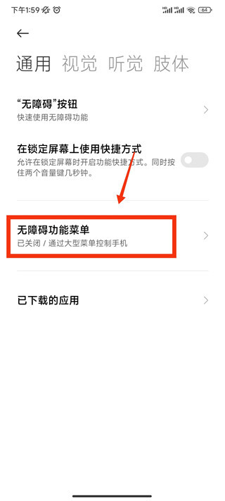 在通用页面中,找到无障碍功能菜单并点击。