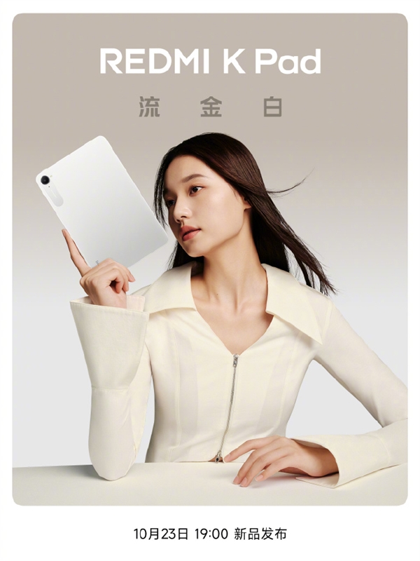 REDMI官方宣布,REDMIKPad全新配色“流金白”将于10月23日(下周四)19点与REDMIK90同场发布。