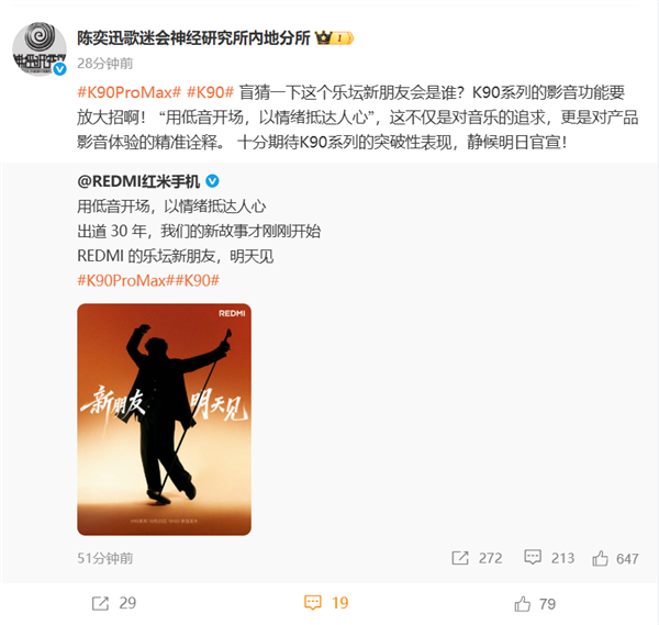 而陈奕迅的身份也刚好符合这次REDMIK90ProMax的亮点,可能性很大。