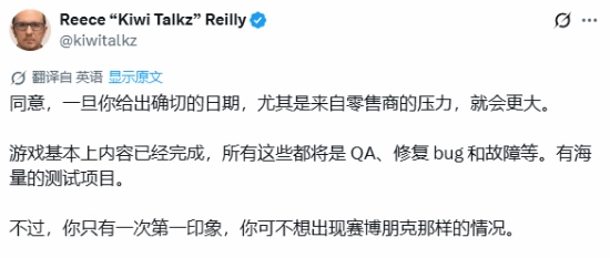 Kiwi Talkz还表示,游戏基本上内容已经完成,剩下的工作主要就是测试和Bug修复。为了避免重蹈《赛博朋克2077》的覆辙,R星可能会谨慎行事,从而延长工期。