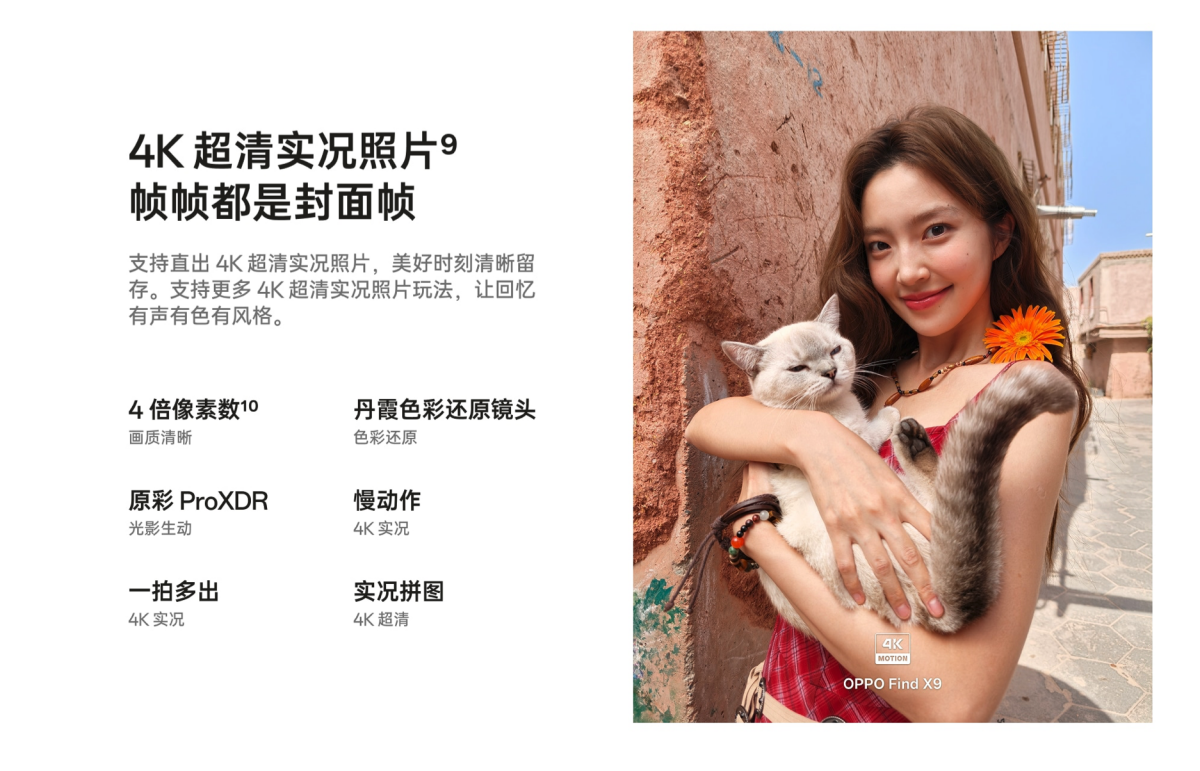 OPPO Find X9系列率先推出了行业内最为全面的AI人像补光系统,该系统能够依据场景智能适配多种光效,使拍摄出的人像更显自然立体,照片也更具专业质感。