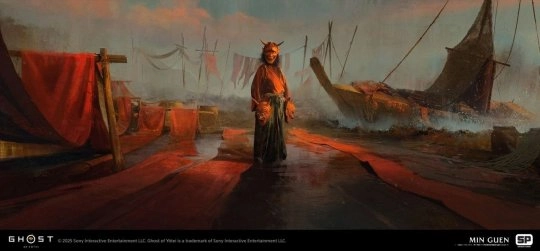 Sucker Punch工作室的概念艺术家Hans Park与Minh Guen最近分享了索尼PS5独占动作游戏《羊蹄山之魂》的早期概念图。并且,Park还对他的概念设计(第一张图)以及这一设计背后所蕴含的理念进行了详细阐述: