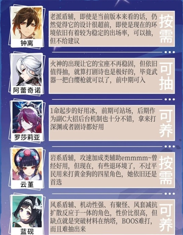 建议:如能抽到,适合团队辅助和风套反应,但材料限制需考虑