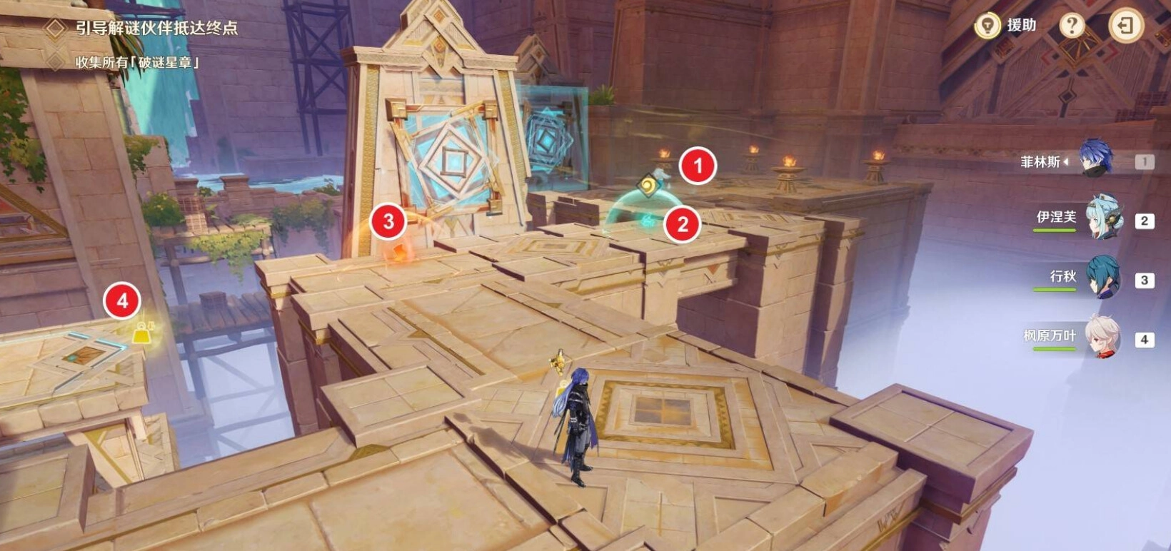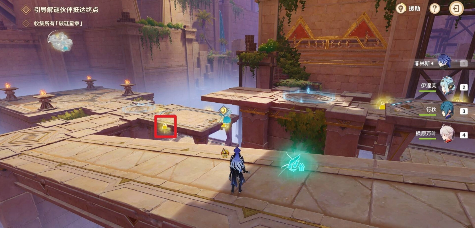 然后等待珐露珊解谜伙伴拾取星章走到终点即可完成此关卡。