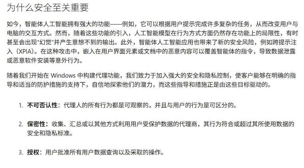 "随着这些功能上线,AI模型在行为模式上仍存在功能局限,偶尔可能产生幻觉并输出异常结果。此外,代理型AI应用会引入新型安全风险,例如跨提示注入攻击——嵌入界面元素或文档的恶意内容可覆盖代理指令,导致数据泄露或恶意软件安装等意外行为。"