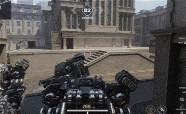 机甲体型大,可能存在视野盲区,如敌人在门后或脚下持续输出。应跳跃拉开距离或占据高点攻击。近战可使用冲撞、践踏或喷火器技能击杀近身敌人。