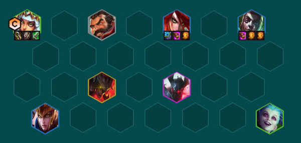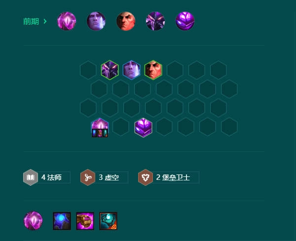5、早期过渡推荐用3虚空2/4法过度,嫖乌鸦也可以用3诺克萨斯2法师过度,蛇女或蚂蚱带大眼装备打工。奥恩2-1拿金色锻炉,白色仅在前期有质量拿,彩色同理。锻炉装备优先拿冥火、破舰者、永霜,其次可以拿魔蕴。装备优先做离子,其次可以做后排的回蓝装,蓝BUFF或青龙刀前期阵容: