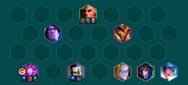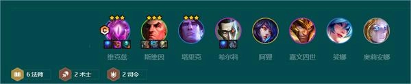 三、【奥恩6法】6法师2术士2司令1、阵容搭配阵容大成只怕对手前排比自己的肉,也怕刺客切后。乌鸦没三之前阵容强度不够,后排容易被剑姬贴脸。